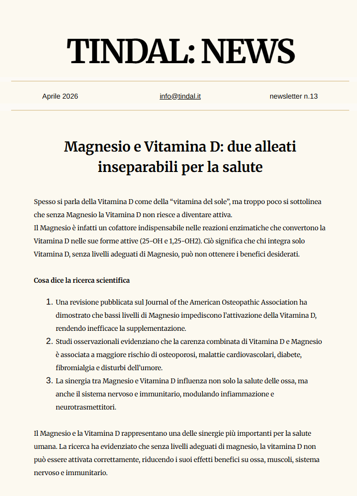 8 Aprile 2026 Magnesio e Vitamina D: due alleati inseparabili per la salute in Newsletter Newsletter n.ro 13 – Aprile 2026 – clicca qui per leggere l’articolo completo